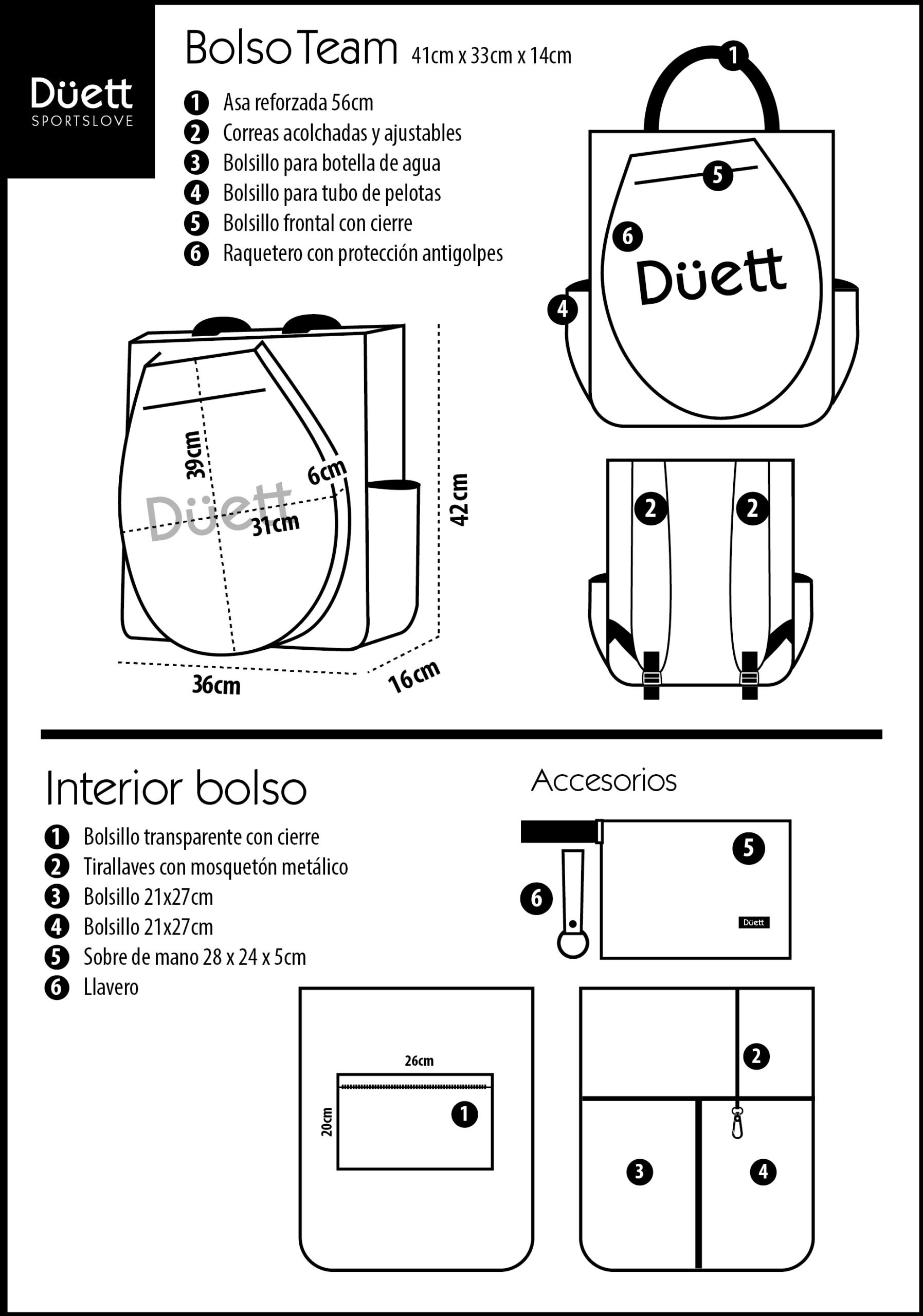 Funcional, cómodo y con ese estilo Duett que te acompaña dentro y fuera del club.