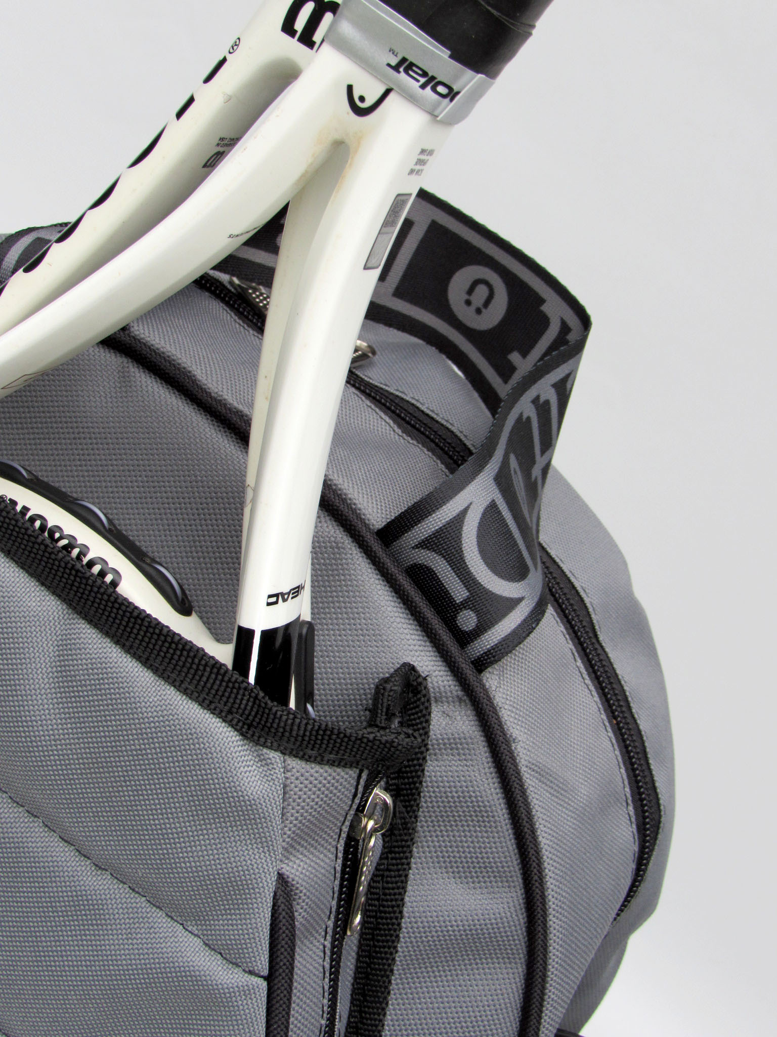 • Compartimento separado con aislante antigolpes para transportar hasta 2 raquetas.