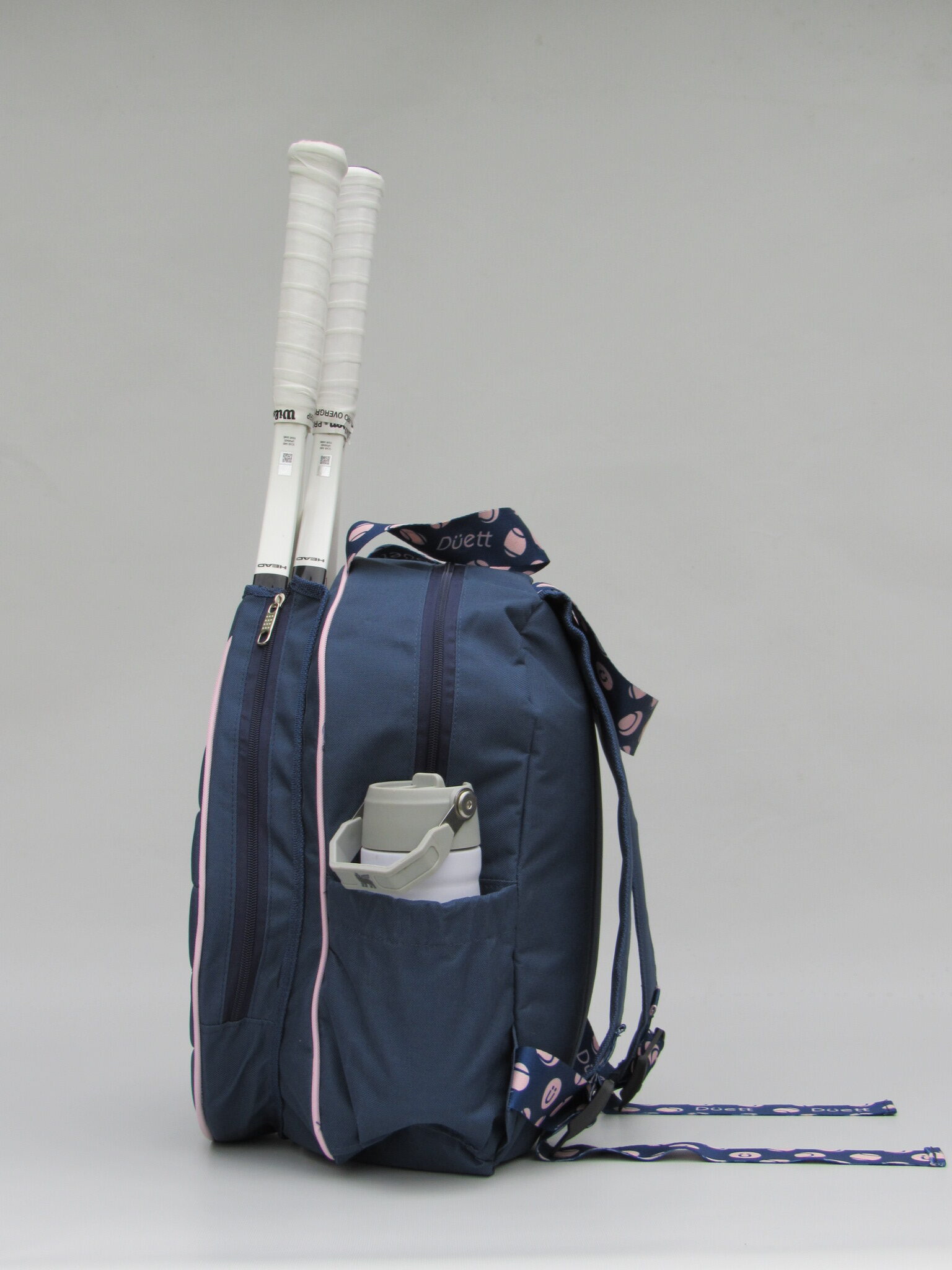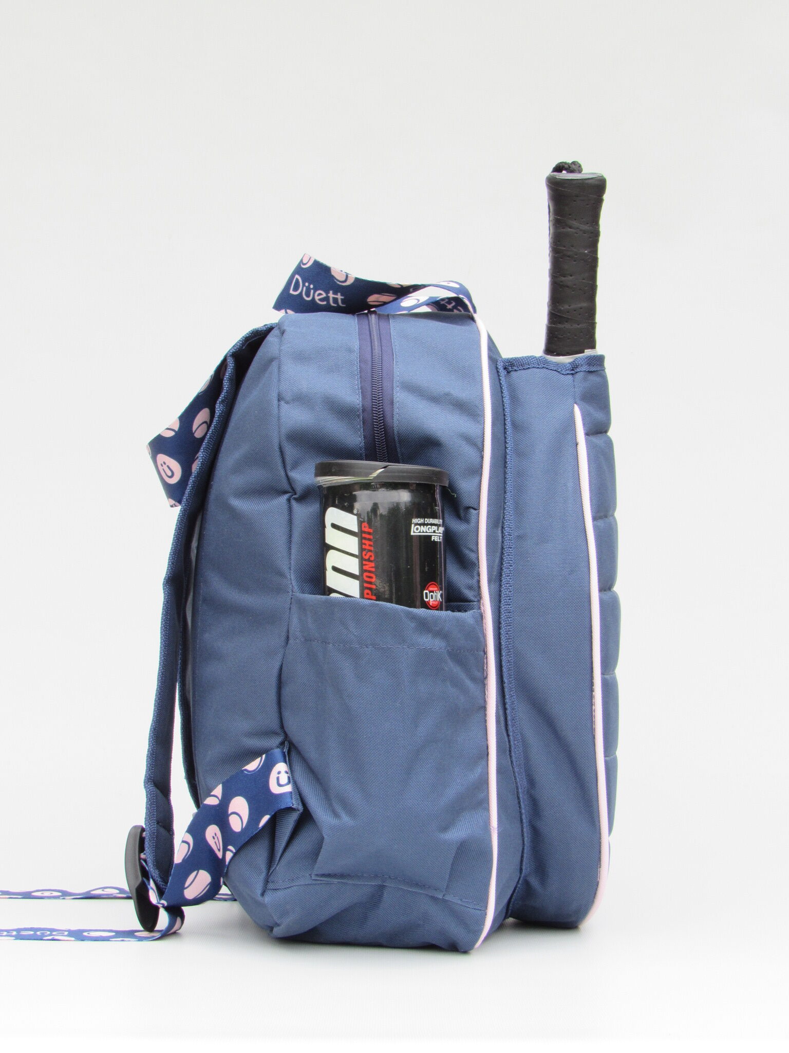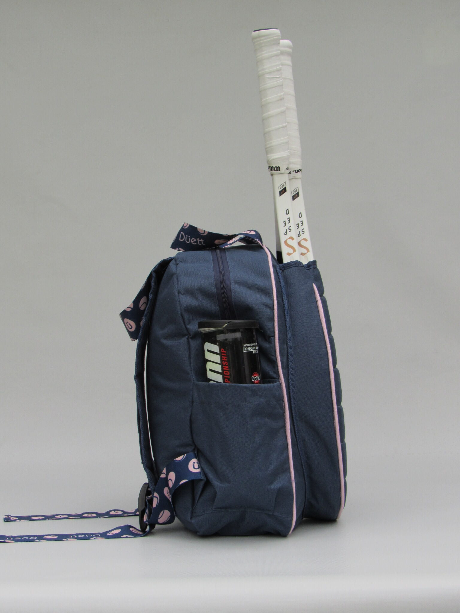 • Bolsillos laterales con profundidad y elástico para botella y tubo de pelotas