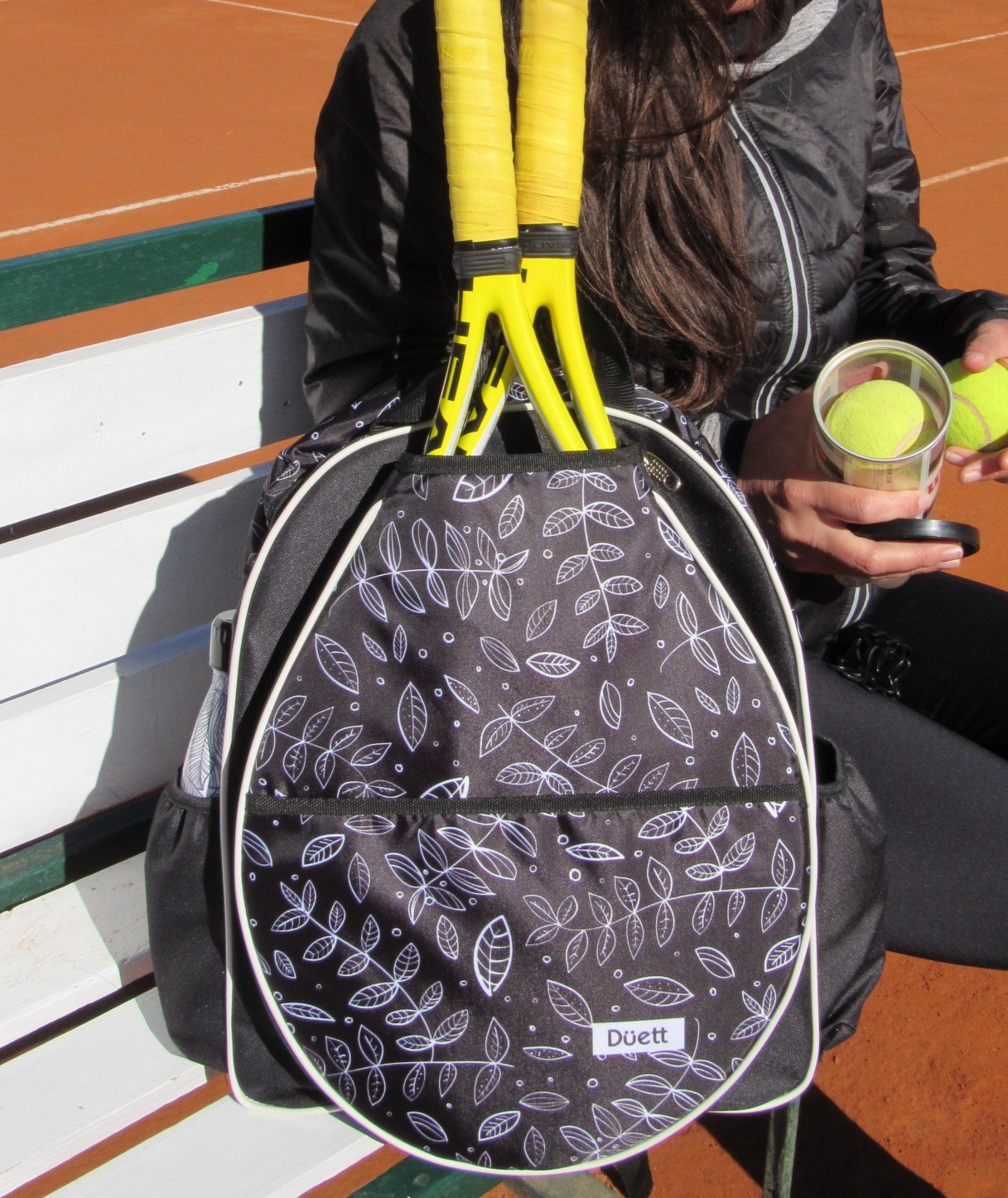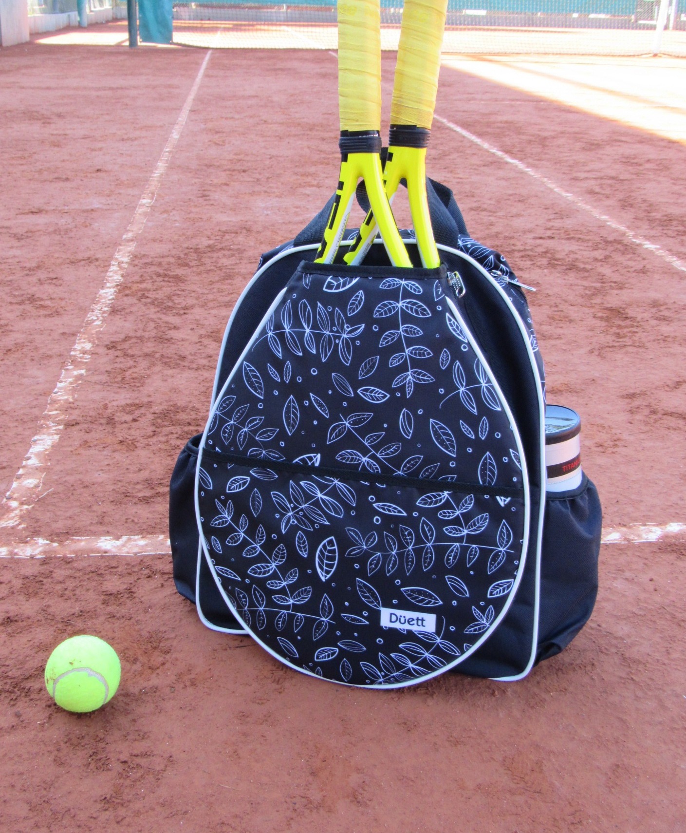 • Bolsillos laterales con profundidad y elástico para botella de agua y tubo de pelotas.