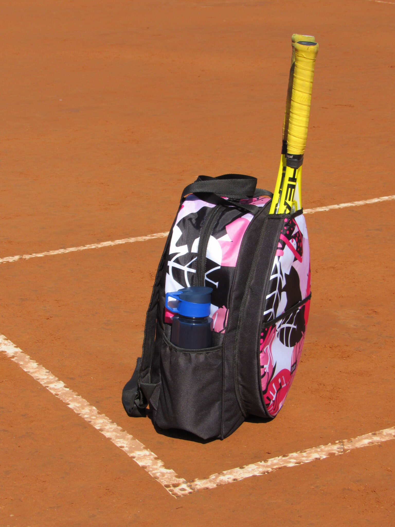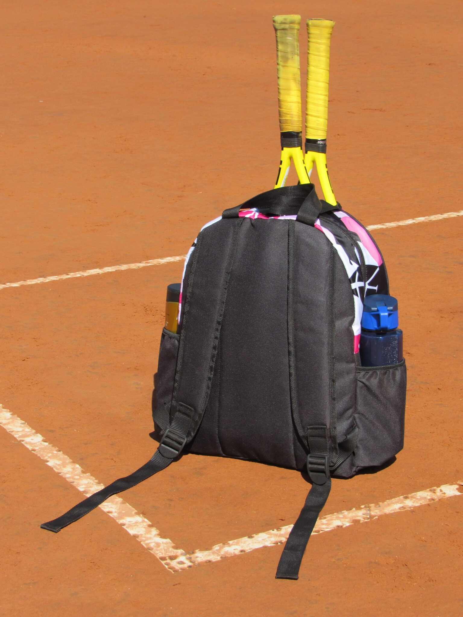• Bolsillos laterales con profundidad y elástico para botella de agua y tubo de pelotas.