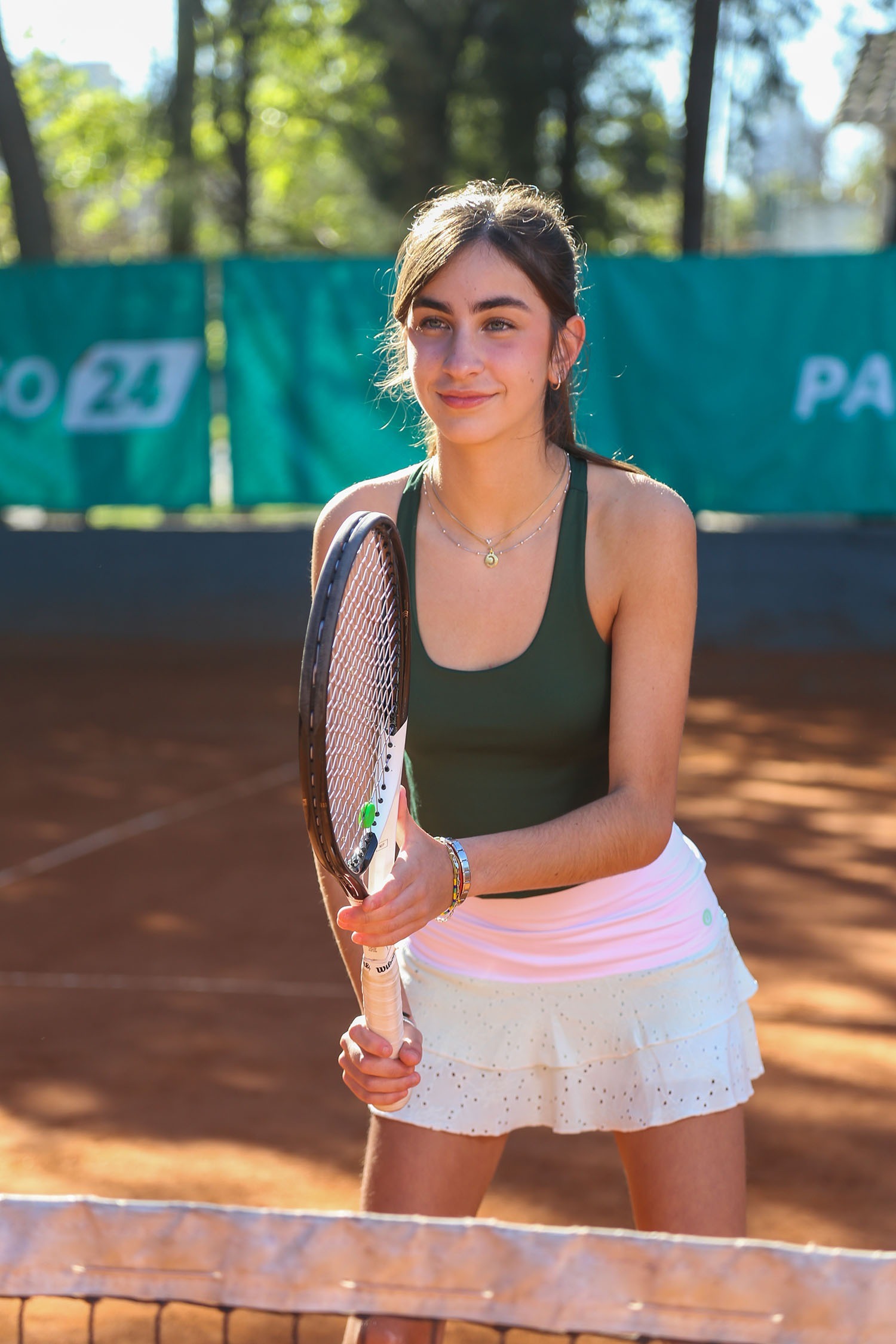 Pollera de lycra con volado en broderie elastizado. Con short de lycra a tono.